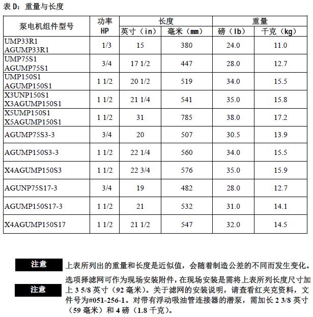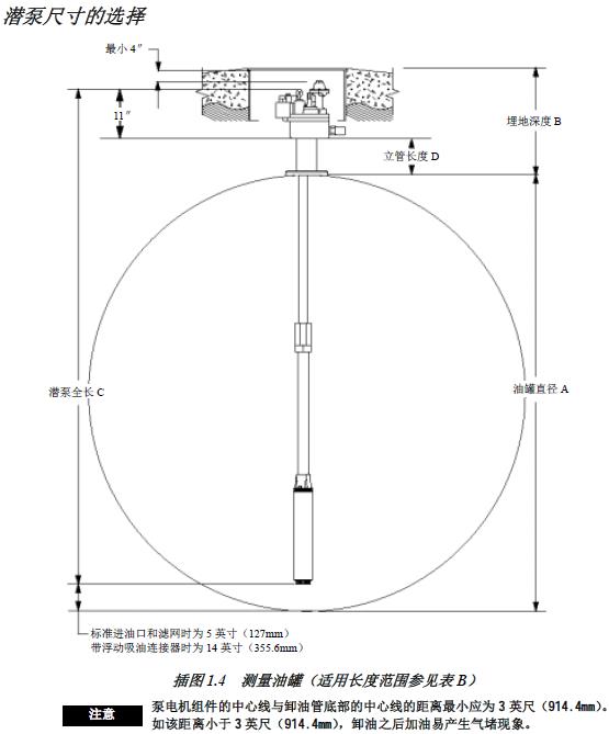 注意: 红夹克潜泵是离心泵,因此当油位低于泵电机组件(UMP)的底端时,潜泵不能将油液抽出。