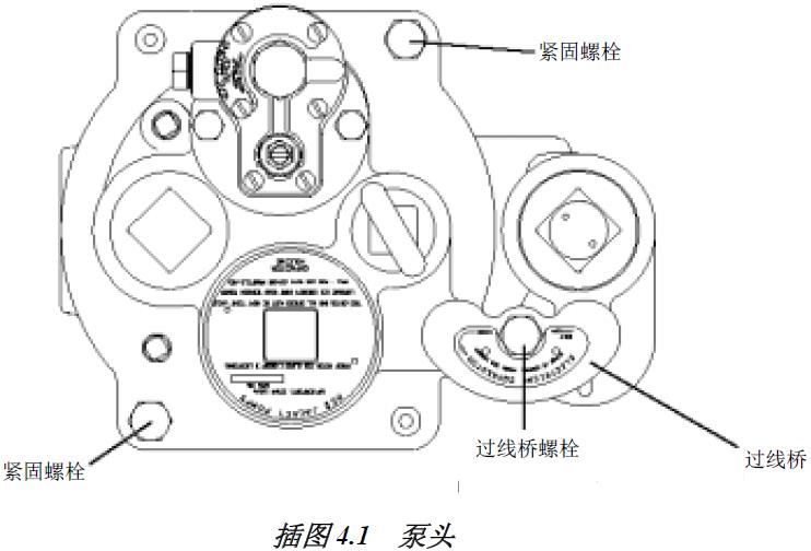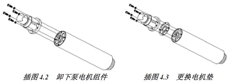 2: 卸下紧固电机座的四个螺栓,卸下旧的泵电机组件。如图4.2所示。